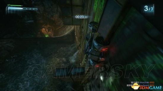 step17.因为step15中已经为3号闸口下方打开了一段通路,所以就直接可以从3号闸口开始作绳降(如果还未移除2层的锯齿机关,玩家需要驾驶蝙蝠车回到1号闸口作step15末端的操作)。
