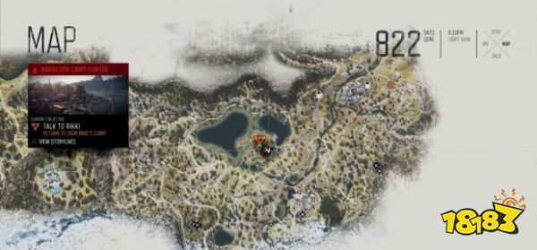 反复传送以加快时间流逝速度,燃油不够的时候在加油站补充,下午比较晚的时候快速回到【铁汉麦克营地】(计划好时间提前回去就行),到营地的时候应该是晚上7点左右,之后前往凉亭等待吉他手出现。