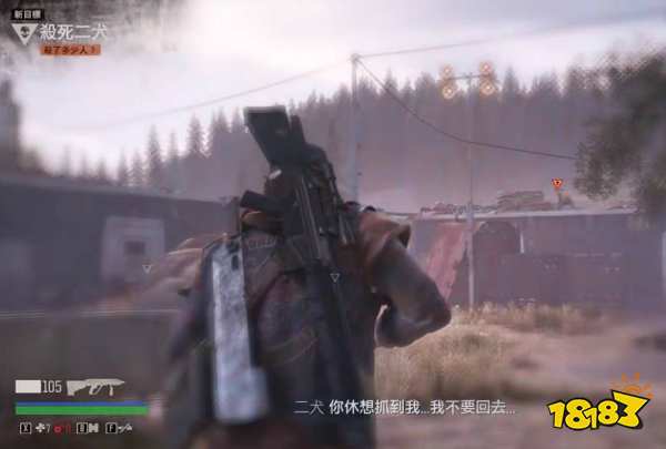 1.带一把狙击枪,然后找个锯木厂没丧尸的高处,装好消声器,把NERO检查哨的喇叭全部射掉,暴走潮自然就会离开那里了。这个时候上去调查痕迹,就会发现任务目标了,但是他会跟你捉迷藏,找机会远程拿狙击枪爆头即可。二犬的刷新点就在下图铁房子上面。