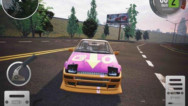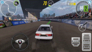 游戏比较直接,简单的新手引导过后就是开始赛车了。比赛中玩家的操作方式有三种,第一种是方向盘控制方向,第二种是转动手机来控制方向,第三种是按键来控制,除了操控方向之外,玩家还可以控制油门、倒车、刹车等操作,在转弯的时候还能进行漂移,配合急刹车的音效,非常有感觉。
