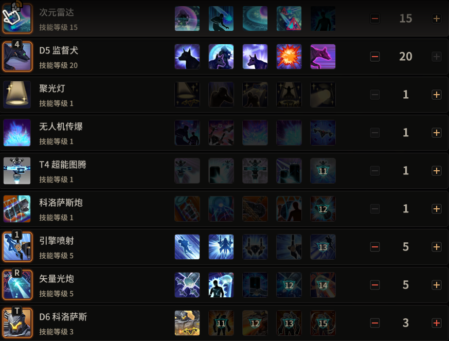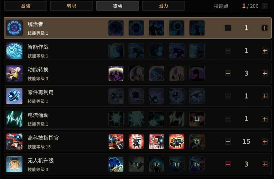 高科技指挥官、无人机升级、统治者可以选择加满,电流最后的选择,动能转换也可以加,增加爆发。