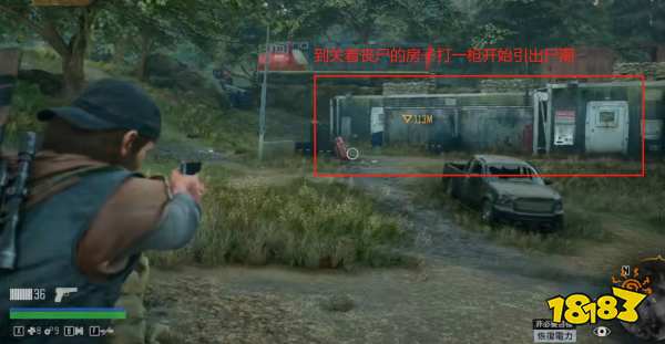 1.我们先引出尸潮,到这个实验室附近打一枪就能引出尸潮。