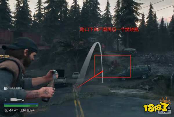 4.实验室里的丧尸打完后,这个火车厢内也有丧尸,我们先扔一个燃烧瓶。