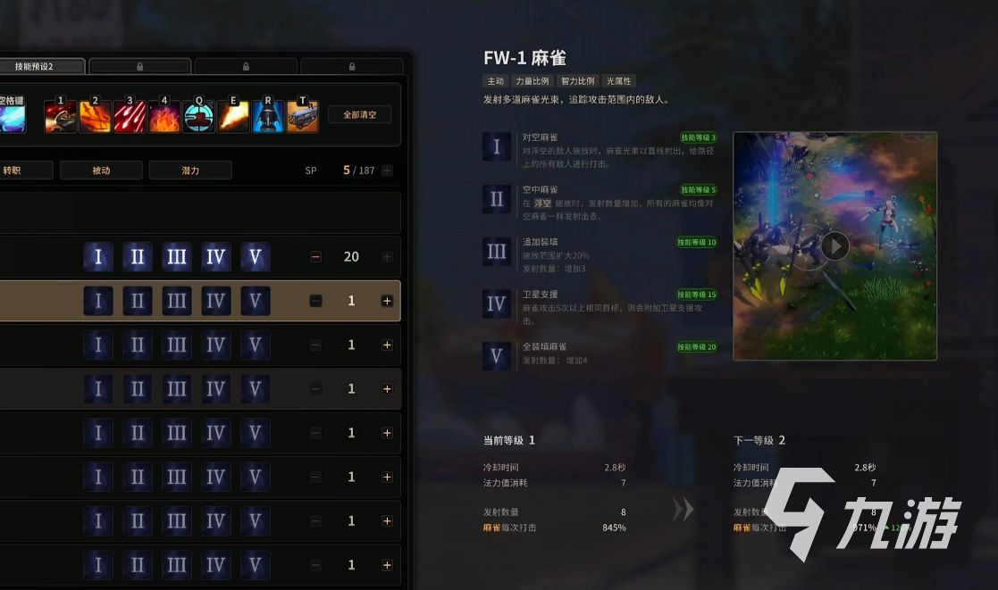另外,基础技能中的麻雀也可以发射多到麻雀光束追踪攻击范围内的敌人,如果将敌人消耗到残血,但是已经不在攻击范围的话,就可以增加自己的移动速度,快速使用麻雀来精准的追击敌人。