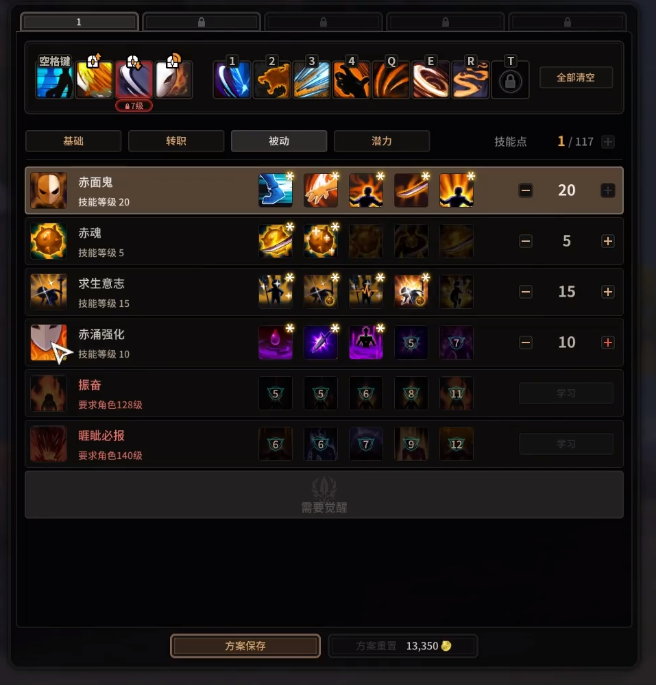 首先我们来看看赤面鬼基础技能的加点。其实基础技能的强度都不高,所以只需要升级普通攻击就行了,如果前期过渡的话,除了普通攻击之外,其他随便点。反正后面可以免费重置一次,到时候再根据自己的需要重新加点。双剑挥舞到了4级之后,可以获得攻克被动,攻击浮空的敌人能额外造成30%的伤害。配合赤面鬼的控制技能非常好用。