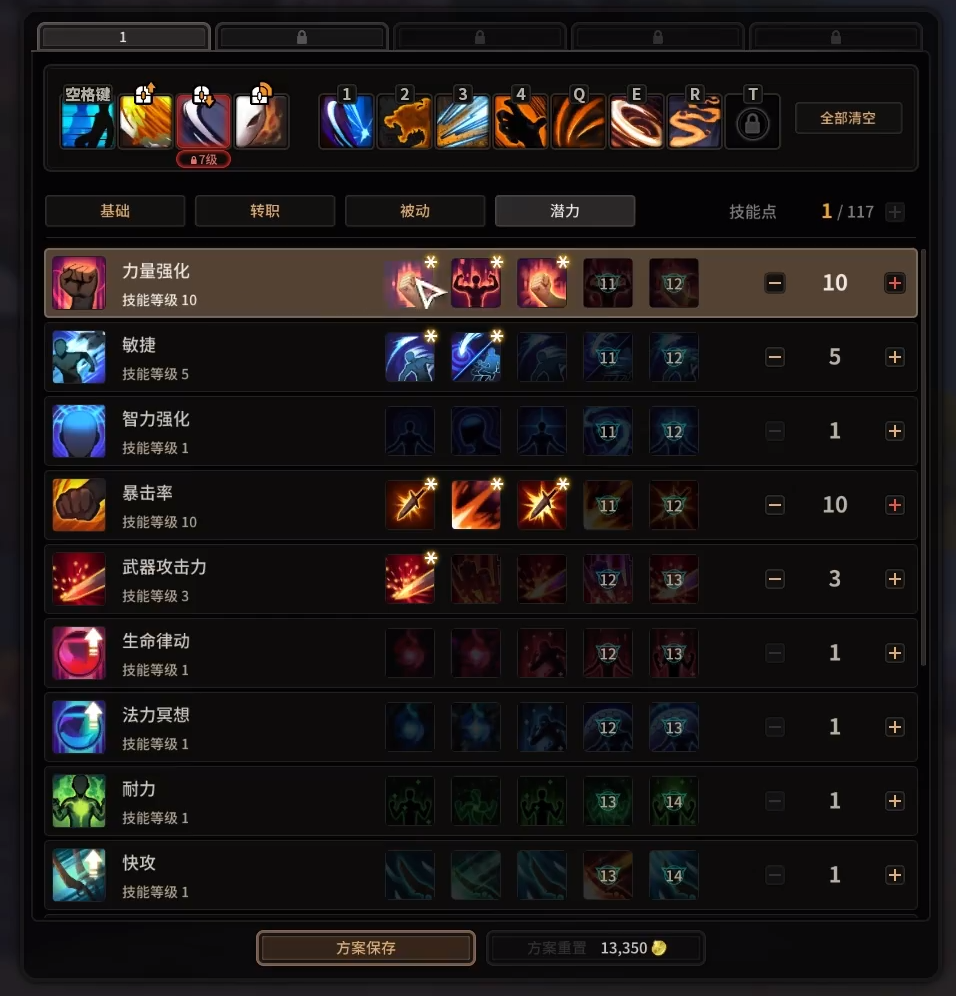 潜力方面,力量强化和暴击率点上去就行。赤面鬼主要还是打一个低血量时候的爆发,在搭配上拥有高暴击的装备,相信竞技场中的赤面鬼,就是一头嗜血的野兽,用强大的力量撕碎一切!