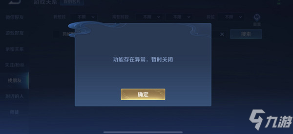 1、近期有玩家在加好友的时候出现“功能存在异常,暂时关闭”的提示,不让加好友了。