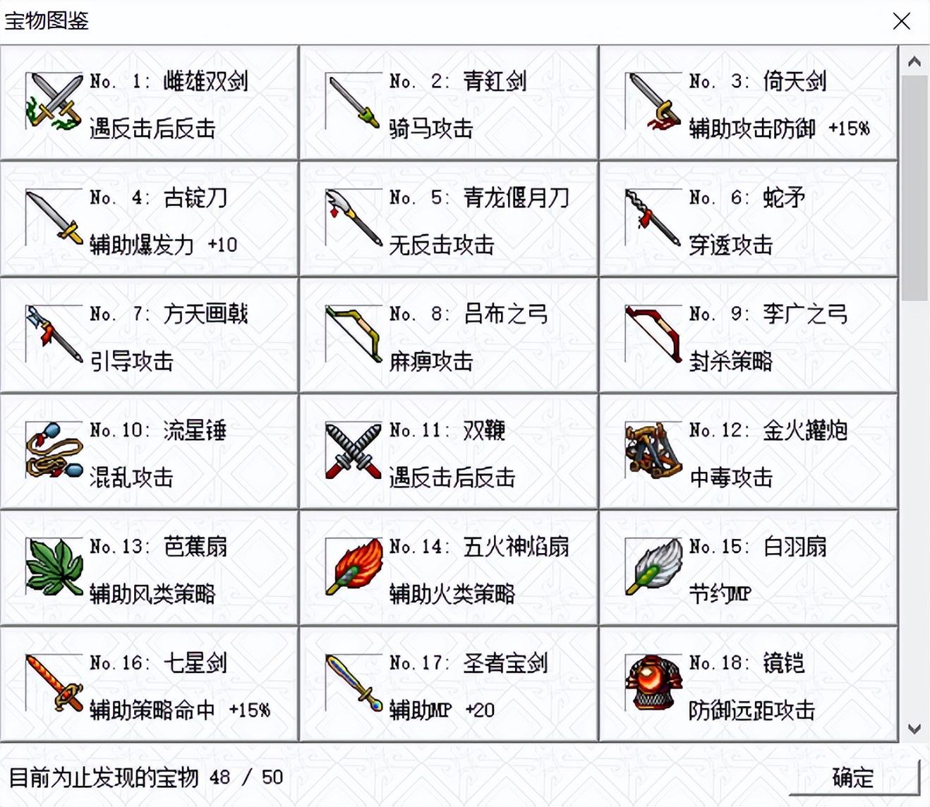 在《三国志曹操传》中,一共有50件宝物,性能有好有坏,但是初次玩这个游戏时,很多玩家因为不懂宝物的性能,都会陷入到一个误区中,那就是宝物必定比商店货好,正因为如此,那时只要拿到了宝物,肯定会先替换下身上穿的商店货,一直用到游戏结束。同样因为不懂宝物的性能,所以会给将领胡乱搭配宝物,导致本该很强力的宝物蒙尘,而一些非常差的宝物却一直穿在强力将领身上。