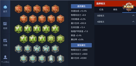 如果5级符文不能凑全,选择3级、4级这些低等级符文来替代是可以的,不过在选择上的大方向不会有太多的变化。4级符文中红色符文可选“狂热”,提高普攻的暴击率,如果配合触发大招必点的两发普攻,极大可能击杀掉对手。蓝色和绿色符文上可以适当选择一些增加防御属性的符文,提高下虞姬的生存能力。当然,符文最后的选择也由各位召唤师凭自己的理解配置。或许是离别改变了她的心态,虞姬将要以高姿态的回归,带着满满的杀戮血洗稷下。
