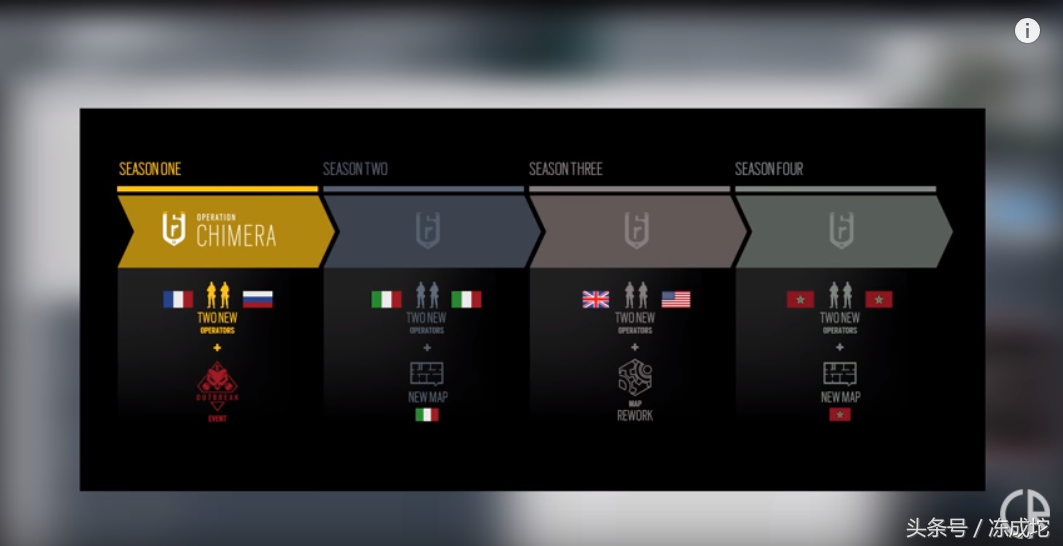 其次,从公告上来看,2018年度计划已经公布,一季度开放生化模式和法国、俄罗斯新干员,二季度是一张意大利新地图和两名意大利新干员,三季度是重置一张旧地图和英国、美国新干员,四季度是一张摩洛哥新地图和两名摩洛哥新干员,全年节奏依旧~