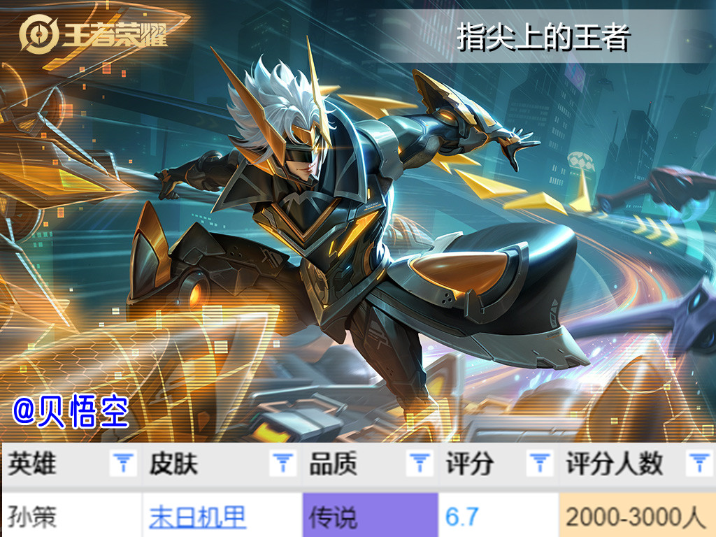 虽然说末日机甲的分数最低,但我个人的心中,末日机甲的手感和技能效果是最好的,当时上线时是补足了最后一个末日机甲的空缺,且是在吕布末日机甲优化之前上线的,所以感觉非常珍贵和稀有。