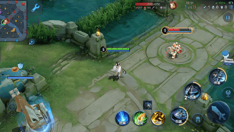 在没有大招的情况下,上官婉儿会显得非常被动,所以4级之前主要以清线为主,如果有辅助跟随,可在开局阶段借助1、2技能及强化普攻打对面一波状态,然后让辅助探视野支援边路。