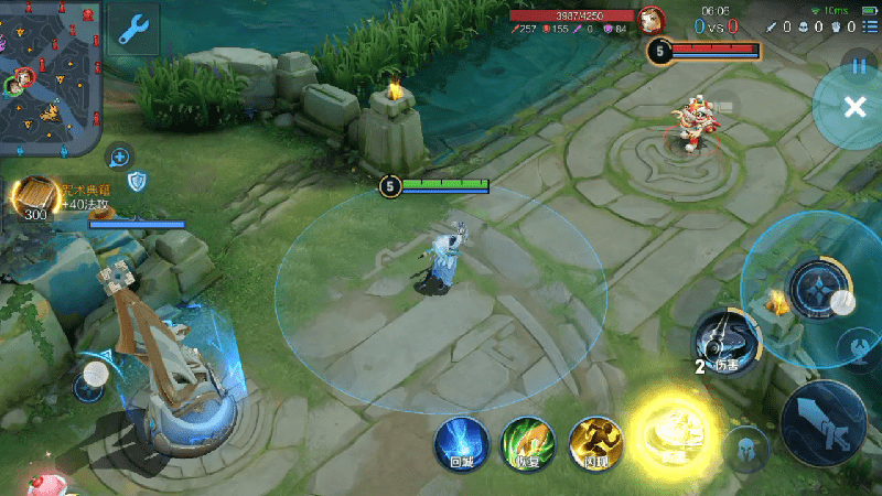 此阶段练习的是技能与轮盘之间的衔接,需要注意的是,1技能的释放方向决定了起飞后上官婉儿的攻击区域。