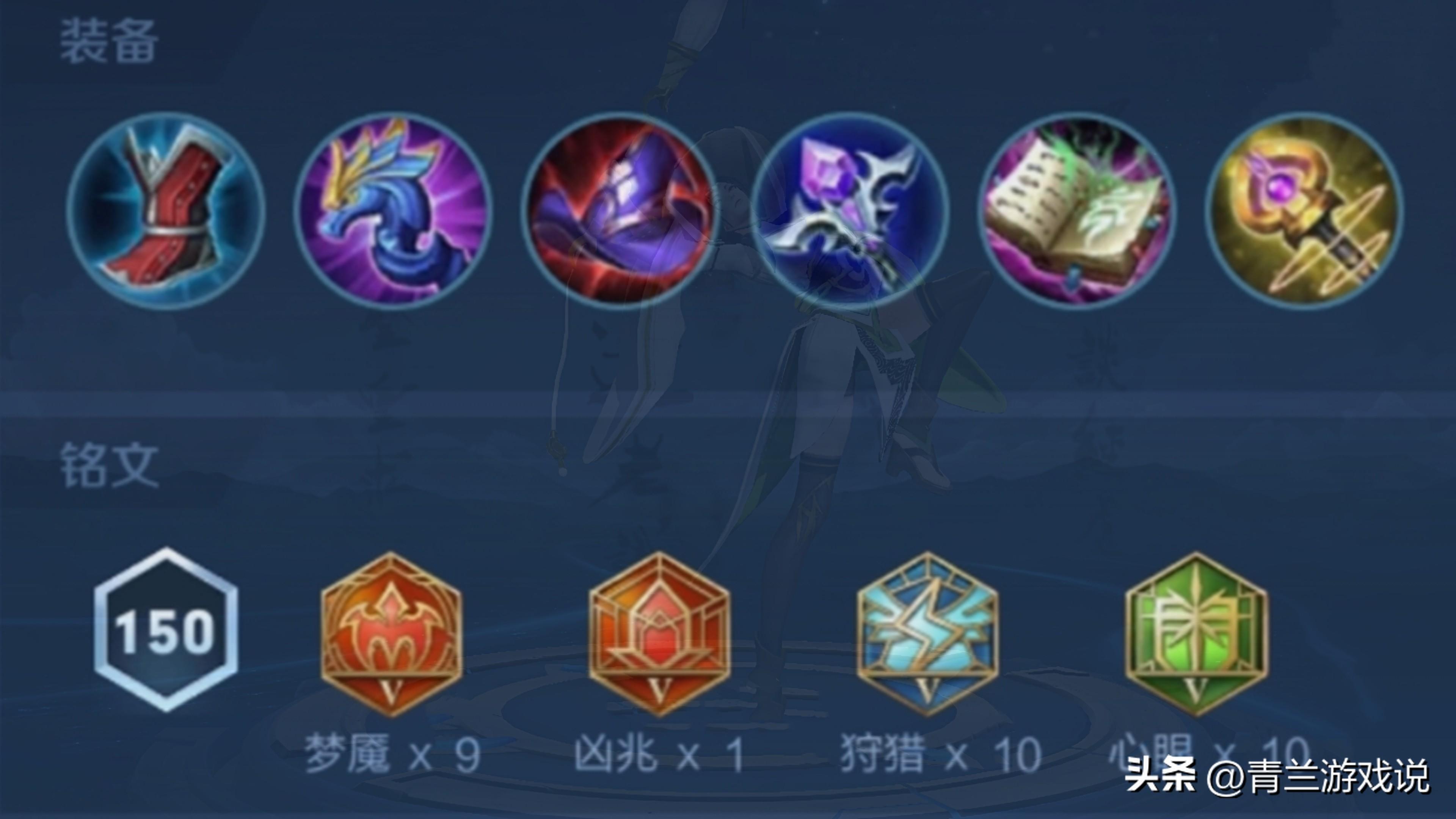 铭文选择:1个凶兆加9个梦魇、10个狩猎、10个心眼;
