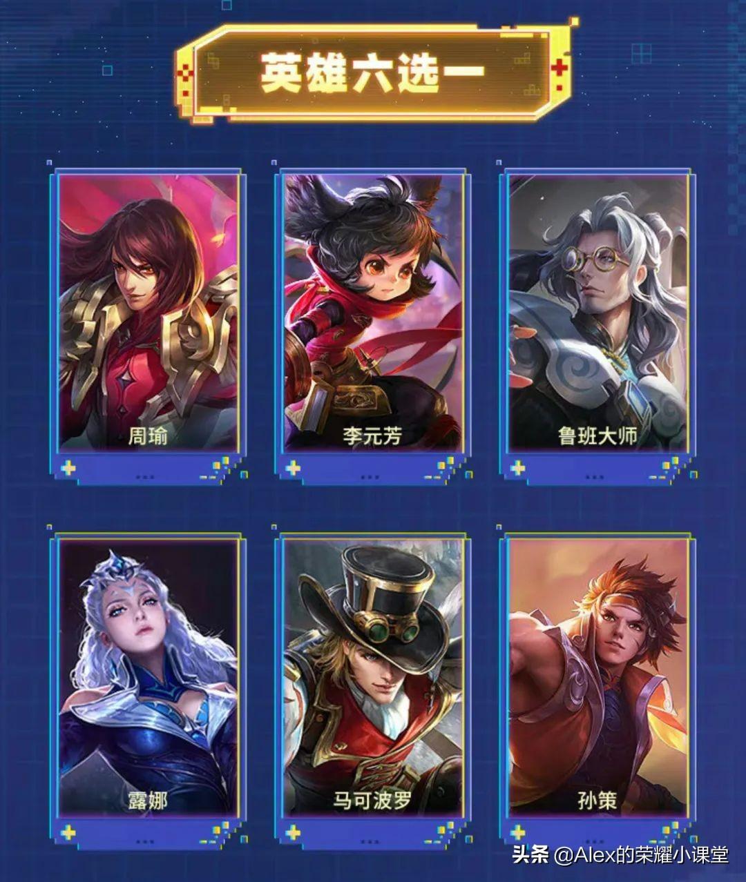 周瑜、李元芳、鲁班大师、露娜、马可波罗、孙策。