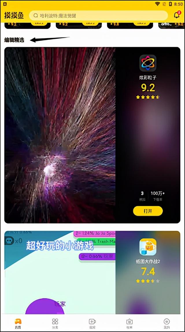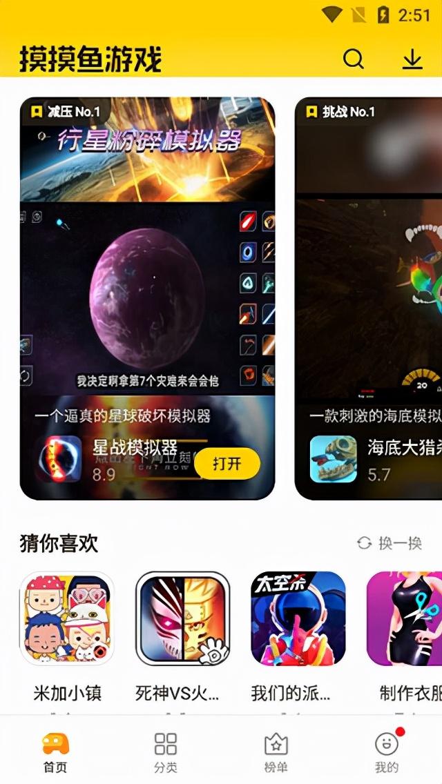 1、下载安装本站提供的摸摸鱼最新版本2022软件,直接进入首页列表,一键下滑就可以看到热门的精选游戏;