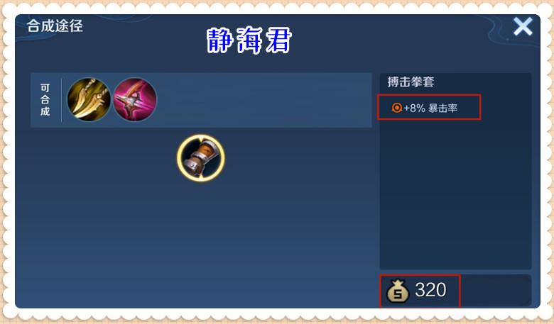 根据搏击拳套的属性和售价,我们可以大概推算出+10%暴击率=400g。