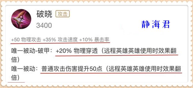 其次,破晓最厉害的地方在于它的属性真的太全面了。攻速、物攻、暴击、物穿、普通攻击伤害提升,一件装备的极致无外乎如此。