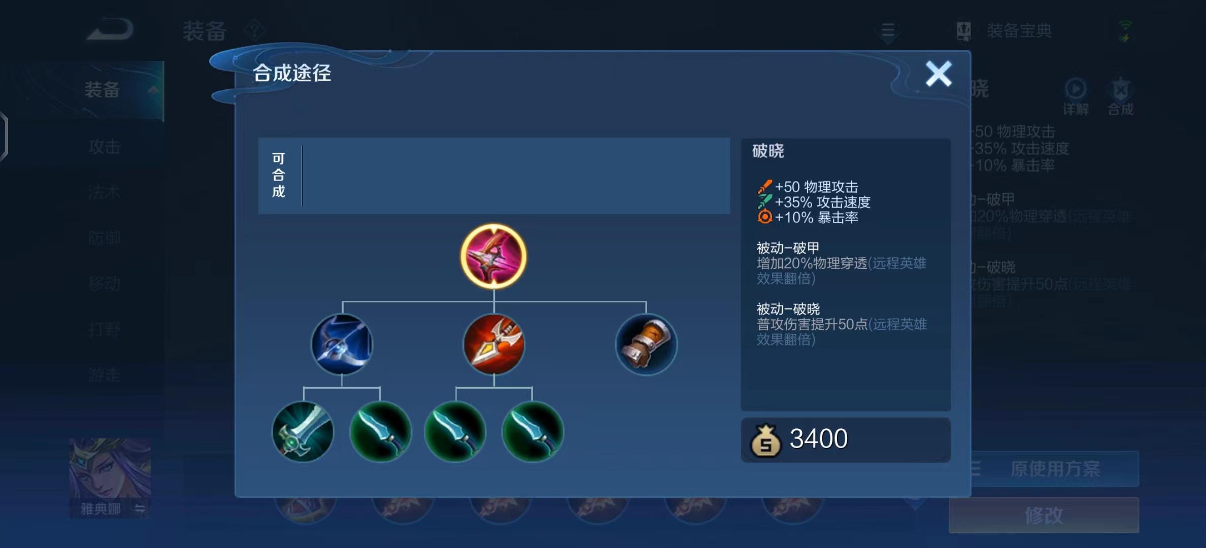 我们还是先来了解一下,两件装备的属性面板!破晓,增加50物理攻击,加35%的攻击速度和10%的暴击率;被动-破甲:增加20%的物理穿透(远程英雄效果翻倍),也六是40%的物理穿透;被动-破晓:普攻伤害提升50点(远程效果翻倍)!