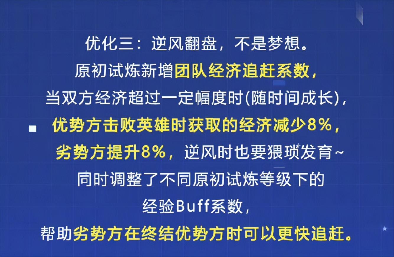 这真的只是大家对这个机制的误解,在这里可以明确和大家表示,这个机制在双方经济差距非常大,只有在极端优势情况下才会触发。因为在这种情况下触发,会给劣势方一点机会,从而取得不错的游戏体验。触发之后,优势方击败英雄获得的经济将会减少8%,劣势方将会提高8%。而并不是之前的10%,官网也对此进行了修正。
