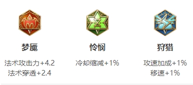 红色梦魇提供了法术攻击和法术穿透的加成,可以在前期让芈月有非常高的伤害,芈月的持续伤害源于技能和被动,因此选择可以增加攻速的铭文。绿色选择怜悯,减少芈月技能冷却的时间。
