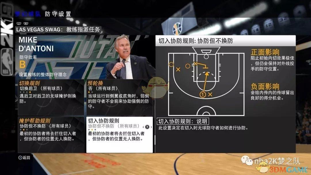 2、持球掩护一定要设置成绕前,还是在这一代三分球bug的前提下,相信很多人都会借内线掩护挡住对面的防守球员直接空位三分,如果绕后的话一定干扰不到!