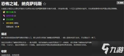 在东瘟疫之地圣光之愿礼拜堂找大法师安吉拉·杜萨图斯,接开门任务“恐怖之城,纳克萨玛斯”,提供相应的材料和金币即可完成任务。但不同的声望,完成任务的要求不太一样,具体如下: