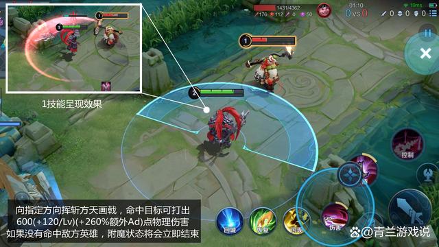 简单理解吕布的被动即“真实伤害、血量回复”,此处需要重点理解的是“挥斩方天画戟的技能”,其实指的是能够对目标造成伤害的技能(1技能和大招)。