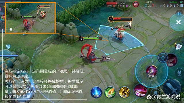 释放2技能,吕布会夺取指定方向一定范围目标的“魂灵”,并以此降低目标持续3秒30%的移动速度。