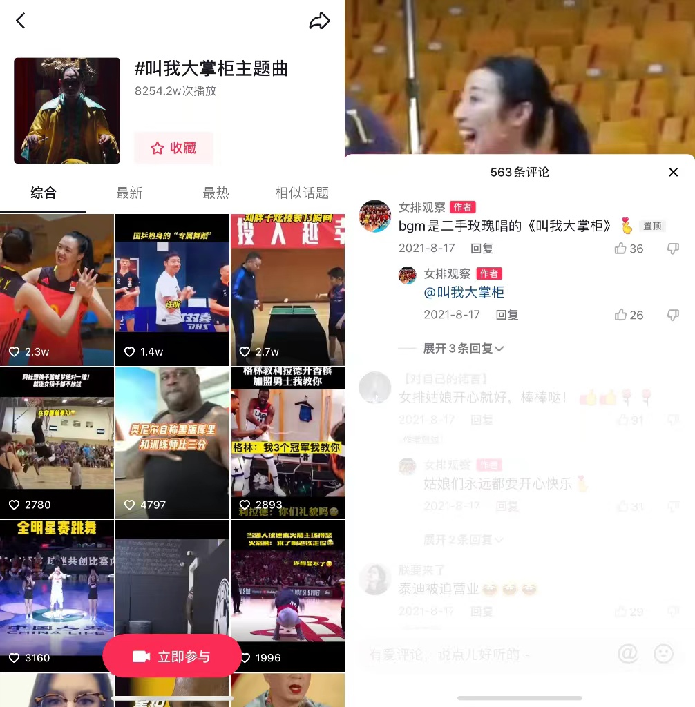 由歌手黄龄演唱的游戏推广曲也在B站获得了超300万的播放量,游戏的古风基调得到了宣传。与二手玫瑰合作的主题曲因兼具雅俗也有着不错的影响力,抖音“叫我大掌柜主题曲”话题下视频播放总量已超8000万。每当有视频使用该背景音乐就是一次宣传,触及的用户也会更多。