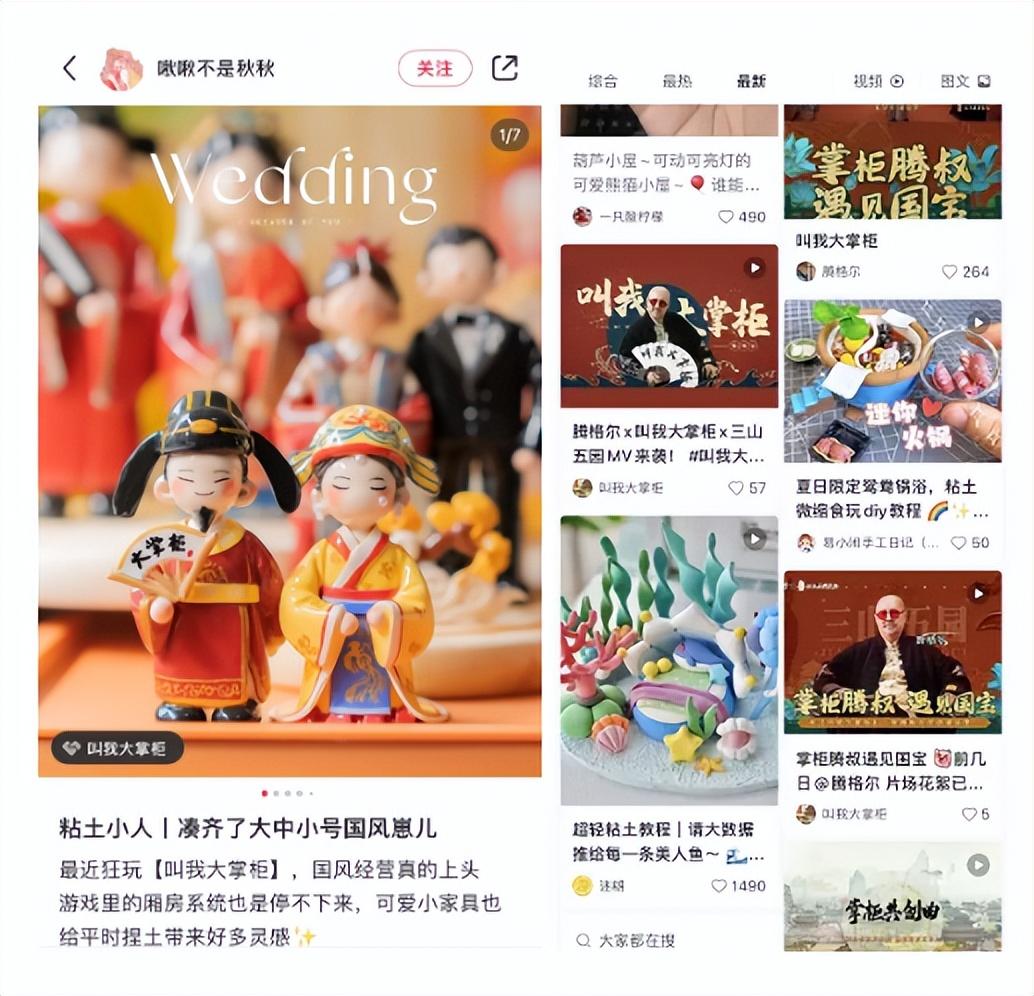 短视频平台外,小红书上也能看到他们的内容营销。在种田、经营玩法外,装饰厢房的内容也引起了不少用户的讨论。敏锐洞察到这一风向后,他们与手工博主合作,推出还原游戏场景、人物的黏土教程。