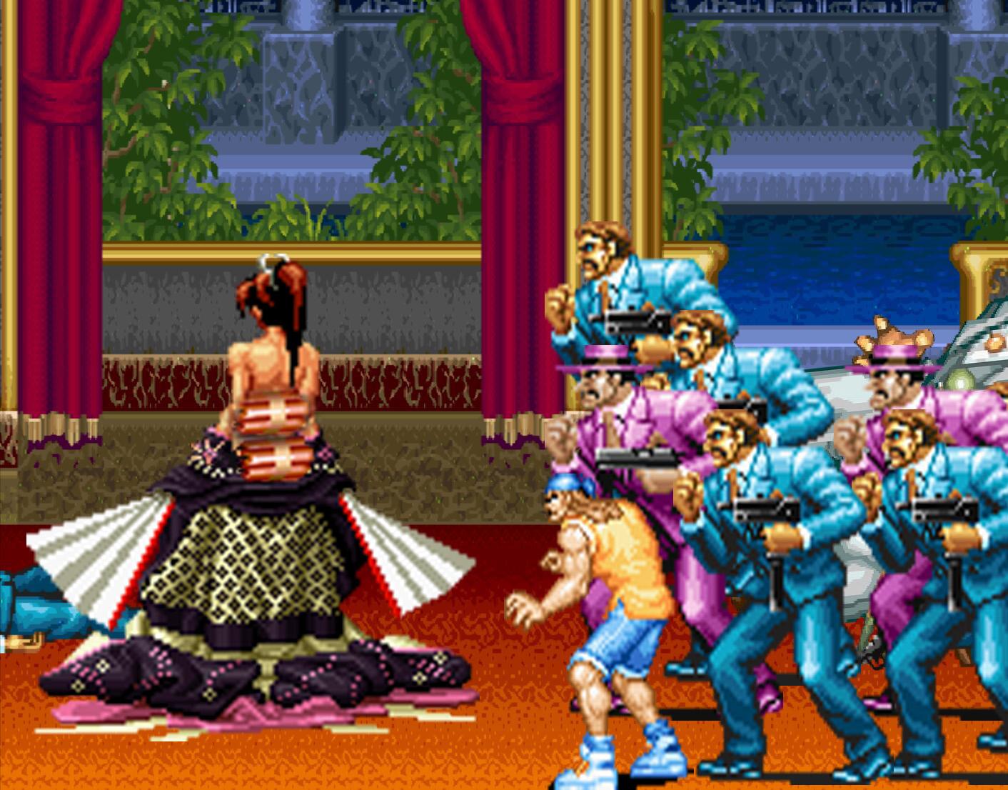 发展到《NEOGEO竞技场》时期,她展现出来的武学似乎更上一层楼。在制住对手之后可以释放出最强奥义: