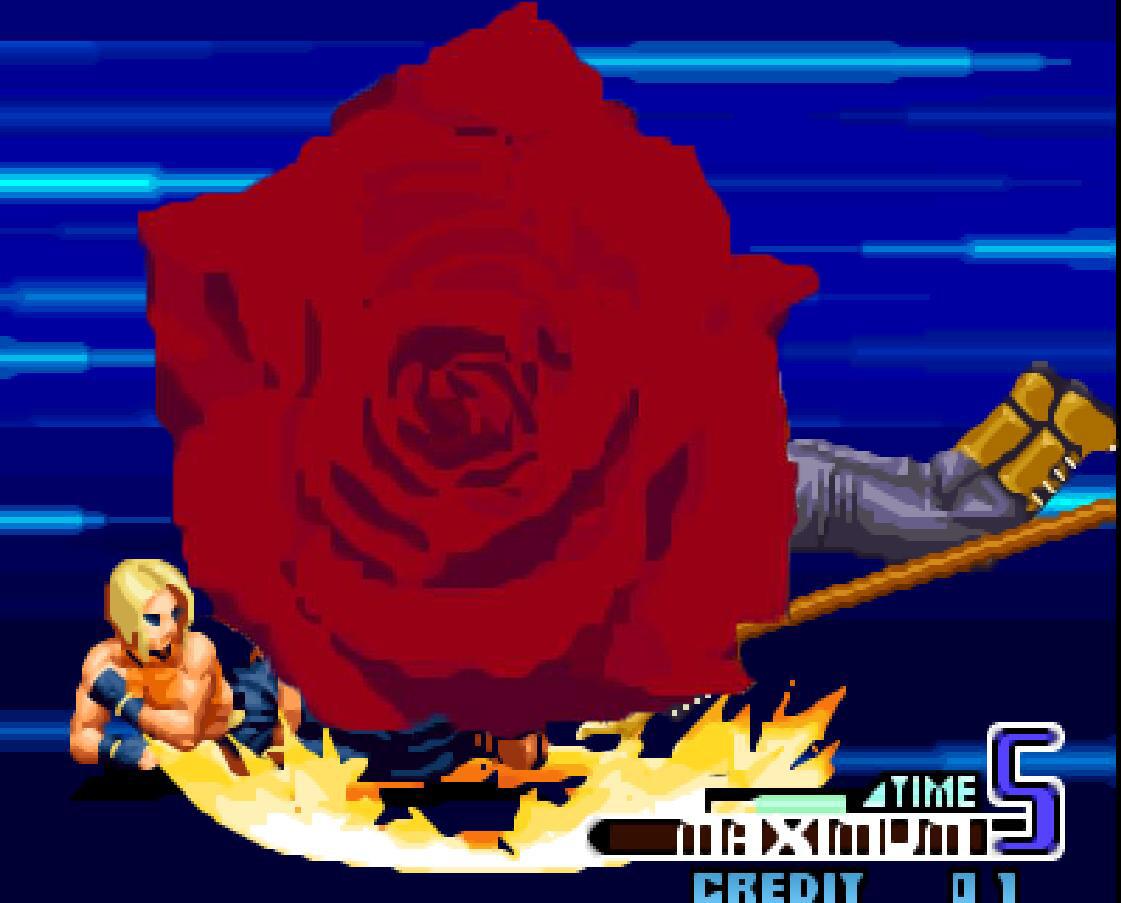 可惜在《拳皇15》中取消了血玫瑰的特效。要是以现在的技术做出来的话,绝对是娇艳欲滴啊!
