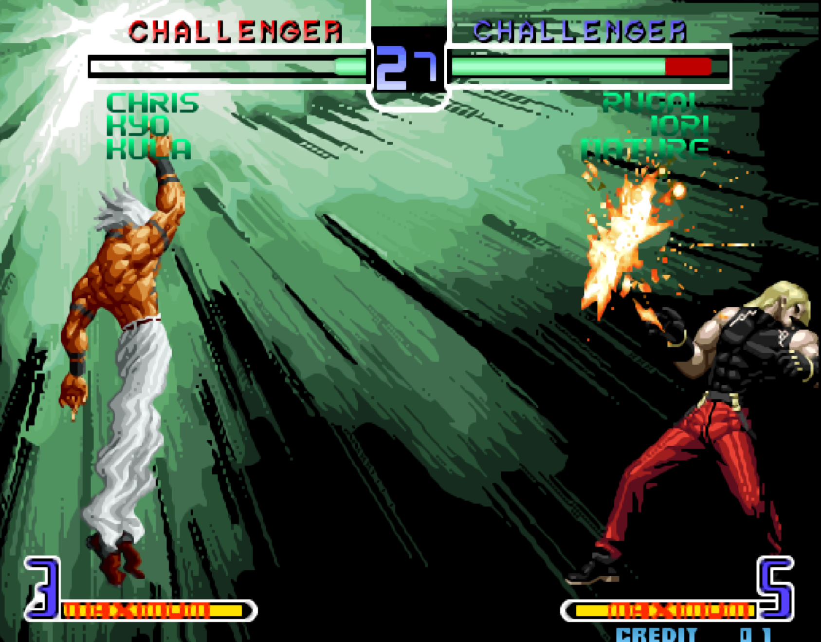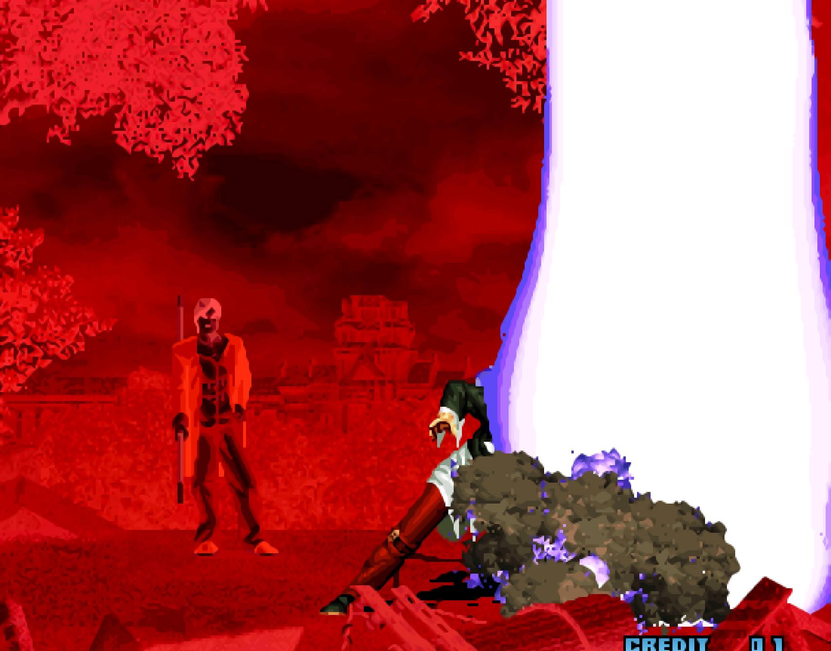 《拳皇新浪潮》的MAX2必杀技其实没有什么变化,仅仅是加入了闪电特效而已。