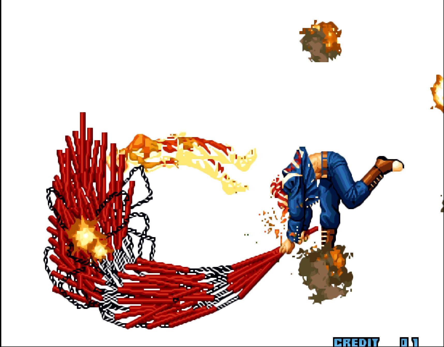 这一招其实是从饿狼传说时期带过来的。不过在《饿狼传说》那边开放出来的血玫瑰没有这么鲜艳。
