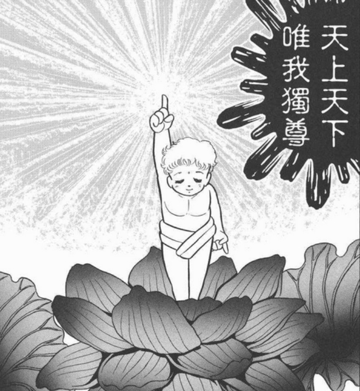这个设定其实就是参考了佛陀降世,上天下地唯吾独尊。这在《圣斗士星矢》中也出现过。