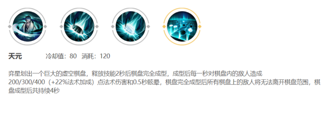 缺点:尽管弈星属于法师,但是其AP加成却很低,一二技能AP加成仅有0.15。如果不能很好地控制棋子的距离打出被动的爆炸伤害,弈星很可能沦为工具人的角色,全场打不出伤害。