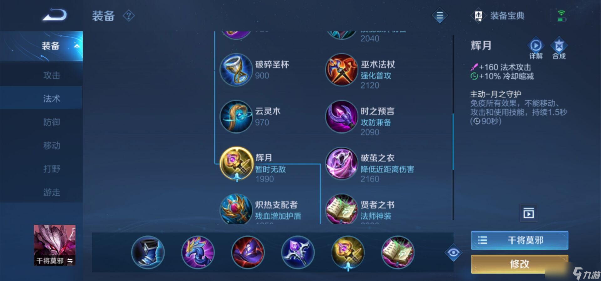 专精装大大提升了干将的持续输出能力,所以圣杯增加续航是必要的,如果考虑到持续续航对面补漏的情况下,可以把最后一件换成吸血书 【个人看法】其实我觉得对于老玩家啊的话,最好还是用传统玩法,我作为一名玩了快将近千把的干将莫邪玩家的话,我实在是不习惯专精装的玩法,而且我个人是比较反感,出了这种装精装的,就感觉干将莫邪失去了他最纯粹的快乐,就是直接瞬秒。当然各有喜好,这样改动对新手玩家更友好,而且干将莫邪最近的热度和强度,也正是因为专精装带来的,所以他也是有优点的