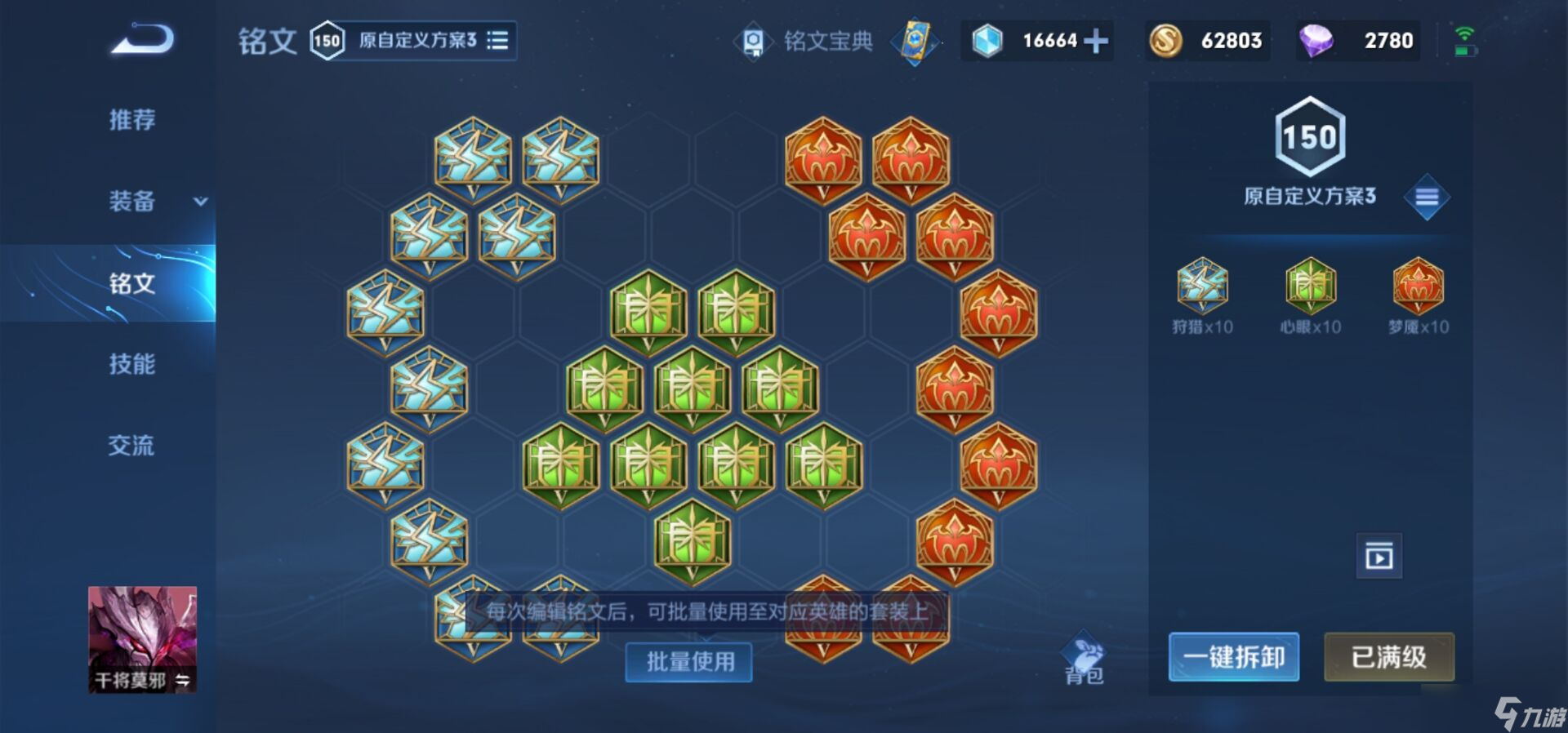 一、技能介绍 1、被动 比翼同心 释放飞剑技能时,莫邪会配合干将的雄剑飞出雌剑造成等额伤害。雌雄剑命中敌方目标会分别叠加雌雄剑气,当飞剑命中被剑气缠绕的目标时,每道剑气额外造成100(+15%法术攻击)法术伤害,同一道剑气被同时多次激发时,后续衰减至50%。 干将莫邪普攻使用飞剑挥砍敌方造成300(+25%法术攻击)法术伤害。 (可能很多人对干将莫邪的被动不是很理解,其实最简单的说法就是有被动标记了的敌方英雄,你用技能再次击中会获得更高的伤害) 2、一技能 护主邪冢 主动CD12秒 消耗80 干将连续两次将剑冢向前推刺出并自身后移,剑冢造成300(+50%法术攻击)法术伤害并击飞击退敌人,剑冢击伤的敌人3秒内降低150点法术防御。 被动:每次击败英雄或助攻,剑冢都为干将增加自身15点永久法术强度,最高20层。 合理的使用一技能是干将莫邪保命的关键,面对大多数英雄的突脸,一技能往往能让我们死里逃生,但是我们一技能不是说别人突到你脸上就要交了,因为现在很多英雄比较灵活,在面对干将莫邪的时候会选择骗出一技能,在追击我们,不能因为他只是拖到你脸上旁边,你就迅速交一技能,要进行更细微的观察和判断 3、二技能,三技能 雌雄双剑.近 雌雄双剑.远 主动CD8秒 消耗45 释放雄剑飞行对路径上的敌人造成350(+45%法术攻击)法术伤害。激发剑气时,每道剑气额外造成100(+15%法术攻击)法术伤害。 4、四技能 剑来 主动CD40秒 消耗165 立即刷新飞剑技能,并唤出更多的剑来强化下次飞剑技能。 被动:增加15%视野范围,每一股飞剑命中敌人减少【剑来】1秒冷却。 二、玩法介绍 【1】传统玩法 核心:血条消失之术 所谓的传统玩法,就是不出专精装,传统玩法讲究的就是一个快,准,狠,依靠干将的高额伤害瞬间杀敌。 1.铭文搭配 十心眼五狩猎五贪婪十梦魇(这是小编的个人习惯,如果大家觉得不合适,可参考大神铭文)梦魇和心眼大部分出装都是一样的,不过,狩猎和贪婪有人喜欢3贪婪7狩猎,看个人喜好吧。 其实现在大多数人玩干将是不出吸血书的,我出五个贪婪的话,是为了一定程度上有续航的能力。而且我第二种出装是会出吸血书的(下方的出装截图出了点问题,不好意思) 2.出装 本人出装有以下两种 第一种是极致输出流,第二种是消耗续航流,主要看当天游戏状态和对面阵容改变。