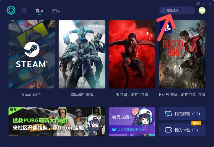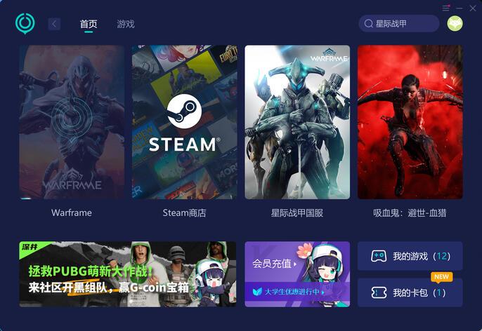 1.下载一个UU加速器,打开后在搜索框输入星际战甲