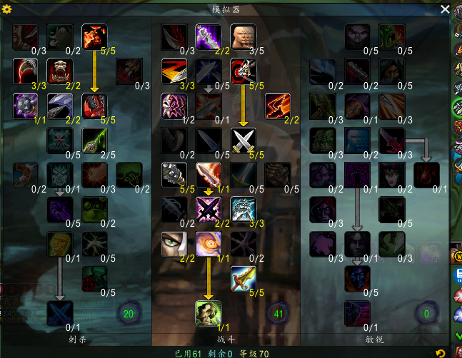 战斗贼天赋使用20-41的标准天赋,武器专精的5点天赋根据自己使用的武器来选择。