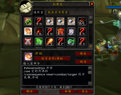 由于剑刃乱舞和冲动会卡公CD,不能同时开,所以这个宏需要按2次才行。