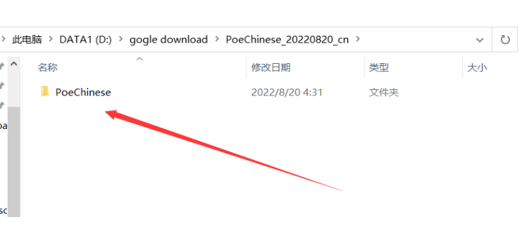 下载完成之后解压压缩包,然后打开poechinese的文件夹。