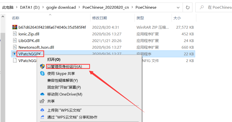 在里面找到 VPatchGGPK.exe 的程序以管理员的身份运行。