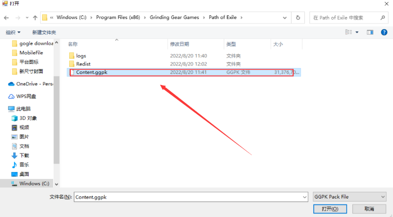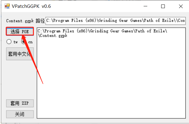 之后选择套用POE,选择文件夹中的ggpk文件。