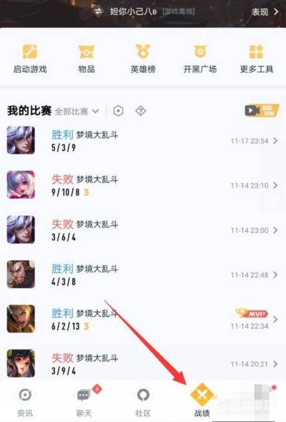 2.点击右下角的战绩选项。