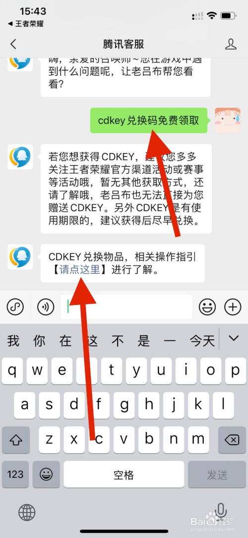接着就是跳转到客服界面,发送【cdkey兑换码免费领取】,等待客服回复,点选择【请点这里】即可。