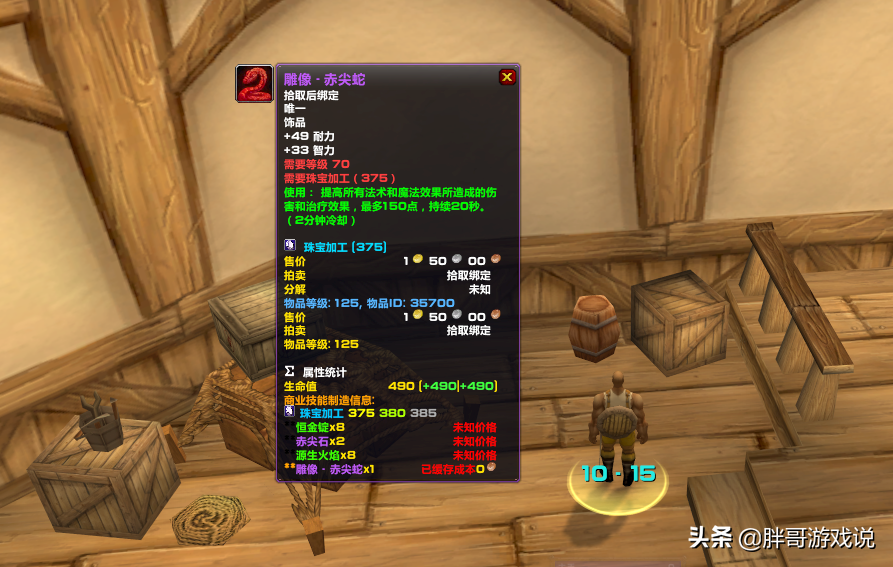 除了影歌猎豹之外,P5阶段珠宝专业还有一款非常不错的饰品——赤尖蛇。主属性为49点耐力和33点智力,特效为150点法伤持续20秒。