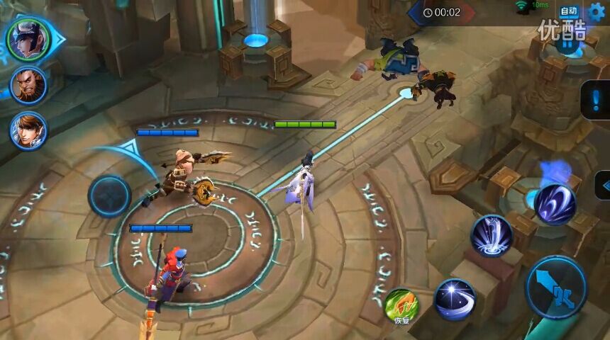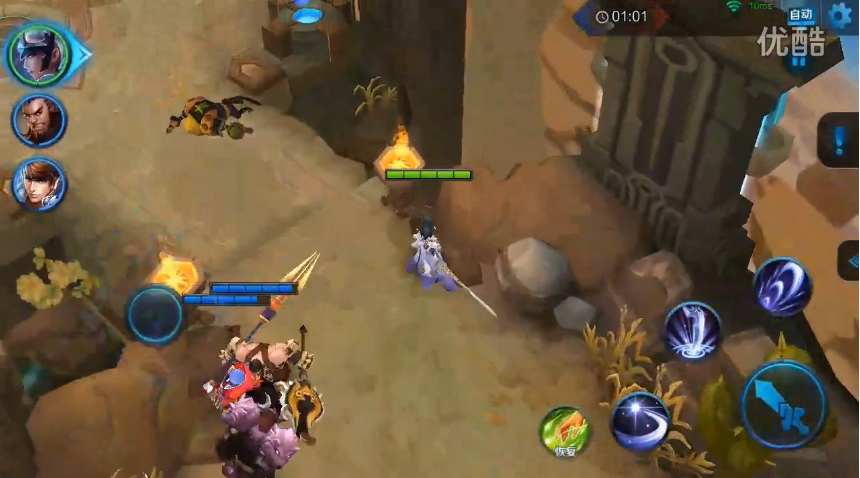 3)清完2波斧头兵后,屁股后面通道会有2波兵来支援,速度集火前面的剑士兵,然后露娜单飞切死后面的弓箭兵,做到伤害最小化。(清完后速度回复血量)