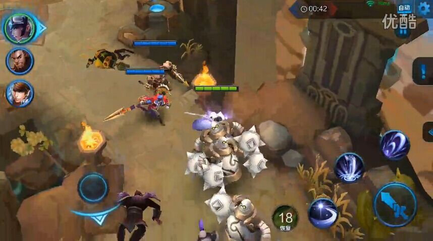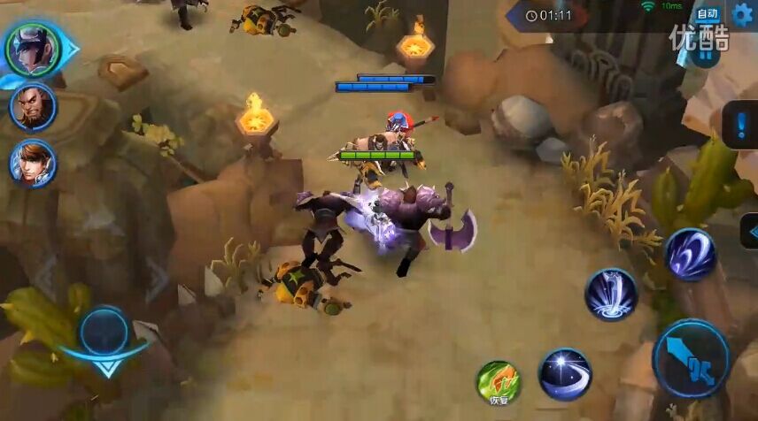 2)右转遇到2波兵,紫色的斧头兵能推人,注意连招别被打断了。